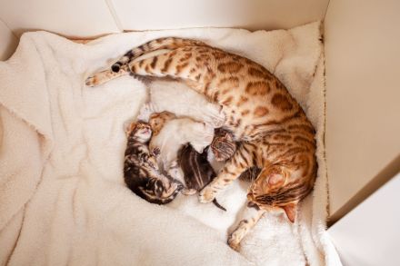 Kätzchen kommen blind, taub und nur etwa 85–115 Gramm schwer zur Welt. In dieser Zeit sind sie völlig auf die Wärme und Muttermilch ihrer Mutter angewiesen, die essenzielle Nährstoffe und Antikörper liefert.